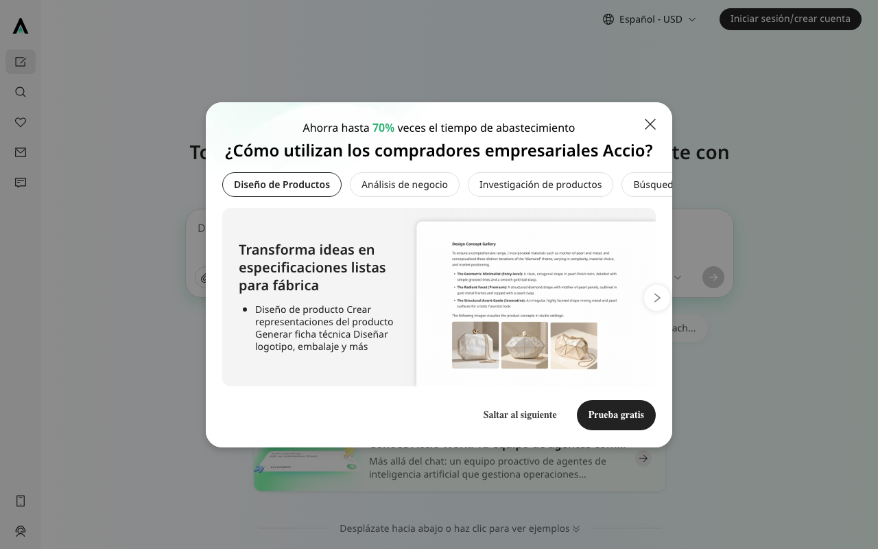 Accio es un motor de sourcing B2B con IA pensado para acelerar la búsqueda de proveedores y la toma de decisiones en compras. Su propuesta combina interpretación de necesidades, análisis de datos de mercado y presentación clara de opciones para que el proceso de abastecimiento sea más rápido y menos manual.