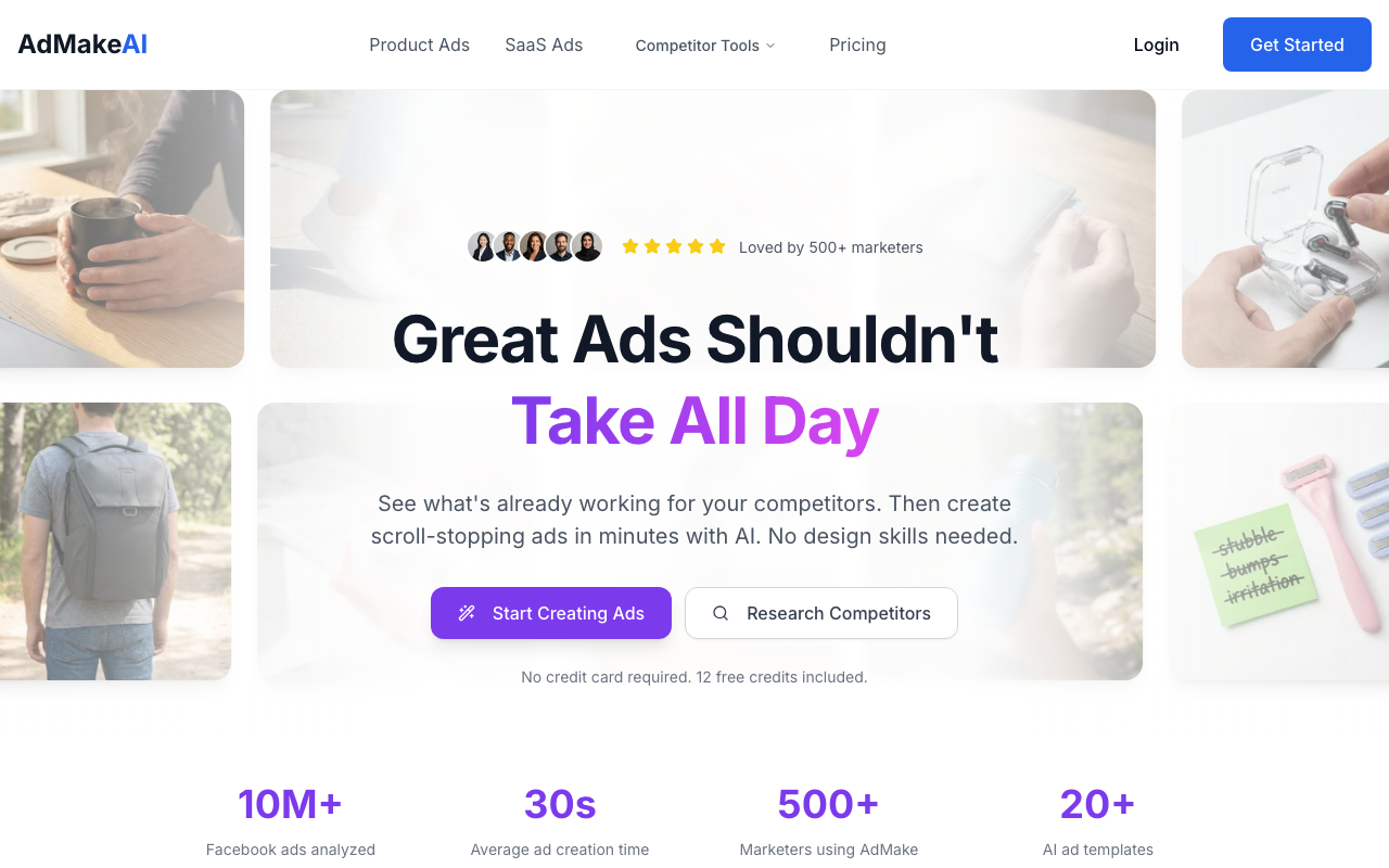 AdMake AI ayuda a investigar qué anuncios están funcionando en Facebook e Instagram y a convertir esos hallazgos en creatividades listas para usar. Su enfoque está centrado en anuncios estáticos, copy publicitario y variaciones inspiradas en lo que ya convierte en tu nicho.
