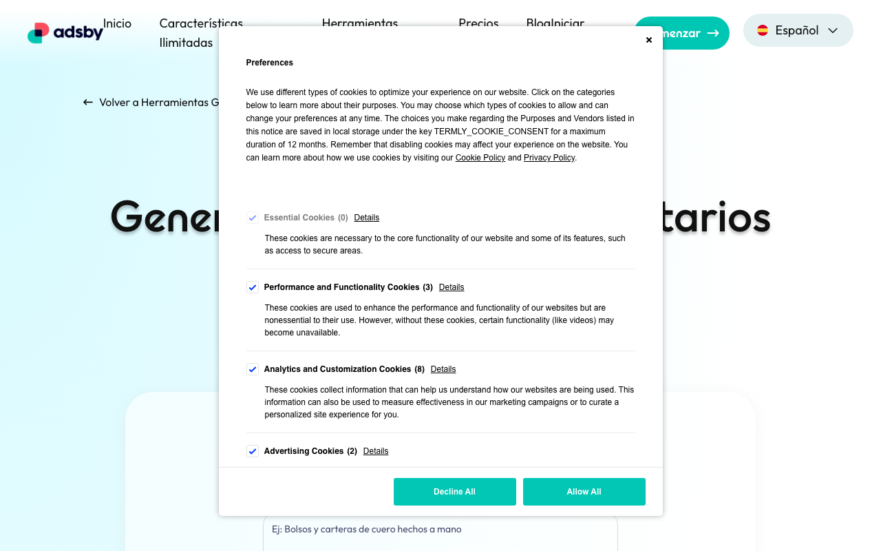 Adsby's Free AI Ad Text Generator ayuda a crear copys publicitarios con apoyo de IA para campañas digitales. Está orientado a negocios pequeños, startups y equipos de marketing que necesitan producir anuncios sin partir de cero.