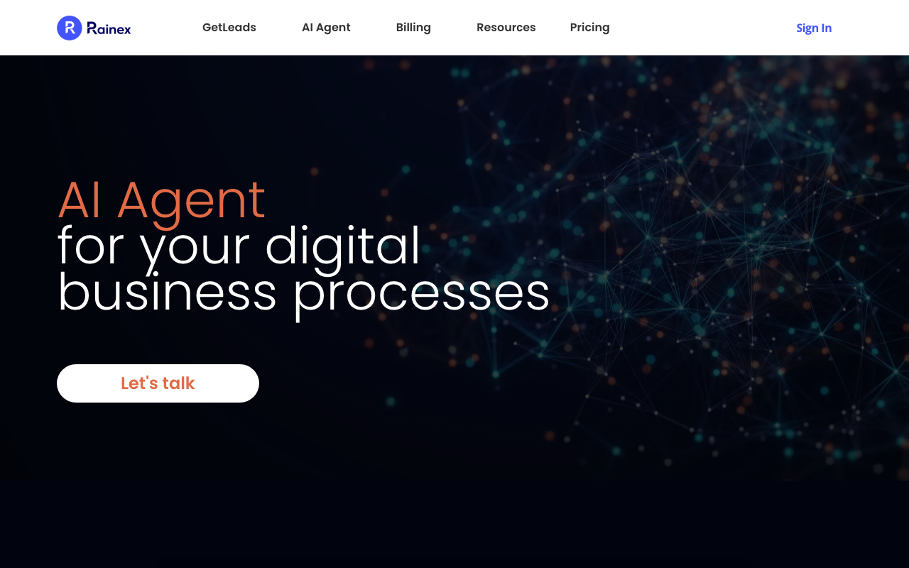 AI Agents de Rainex automatiza procesos empresariales, interactúa con usuarios y sistemas para resolver problemas y asistir en diversos procesos.