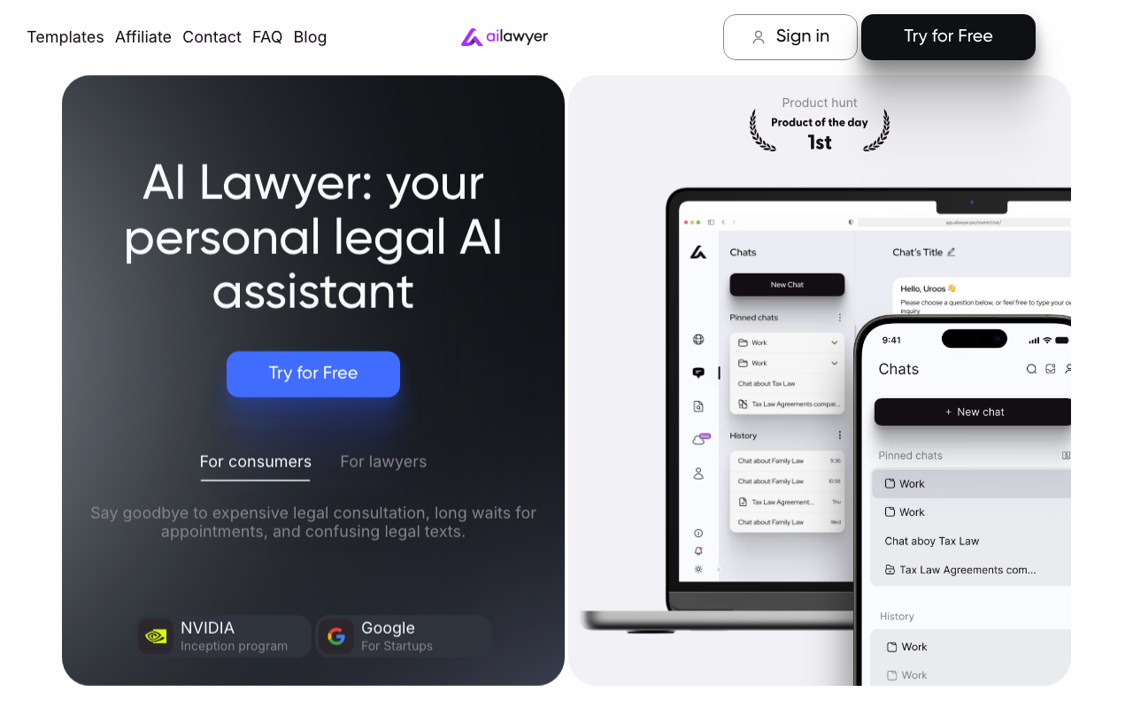 AI Lawyer es una plataforma de IA que ofrece asesoramiento legal instantáneo y herramientas para crear documentos legales, reemplazando consultas costosas y largas esperas.