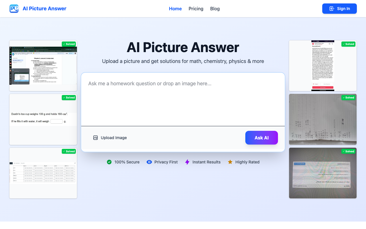 AI Picture Answer es una herramienta de IA que ayuda a estudiantes a entender y resolver problemas de tarea mediante análisis de imágenes.