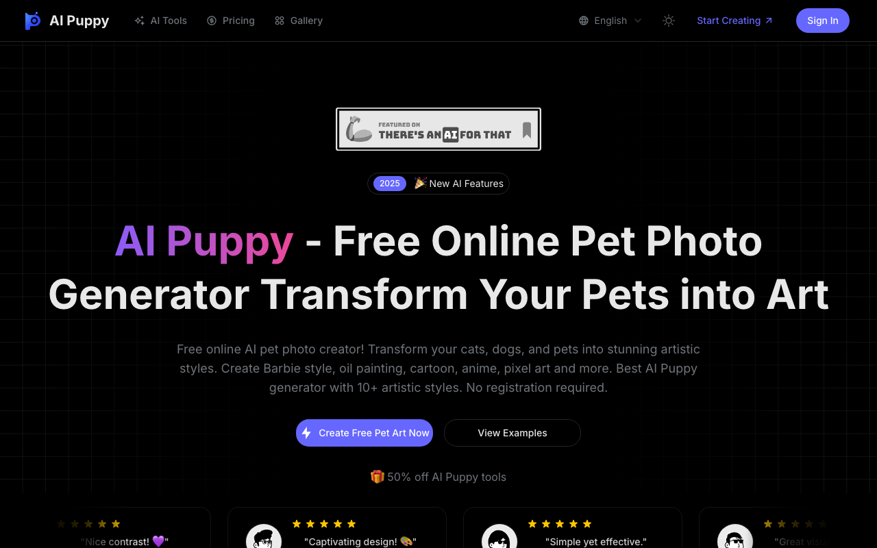 AI Puppy es un generador online de arte para mascotas que transforma fotos de gatos, perros y otros animales en ilustraciones con estilos artísticos llamativos. La idea es simple: subes una foto, eliges el estilo y obtienes una versión creativa lista para descargar y compartir.