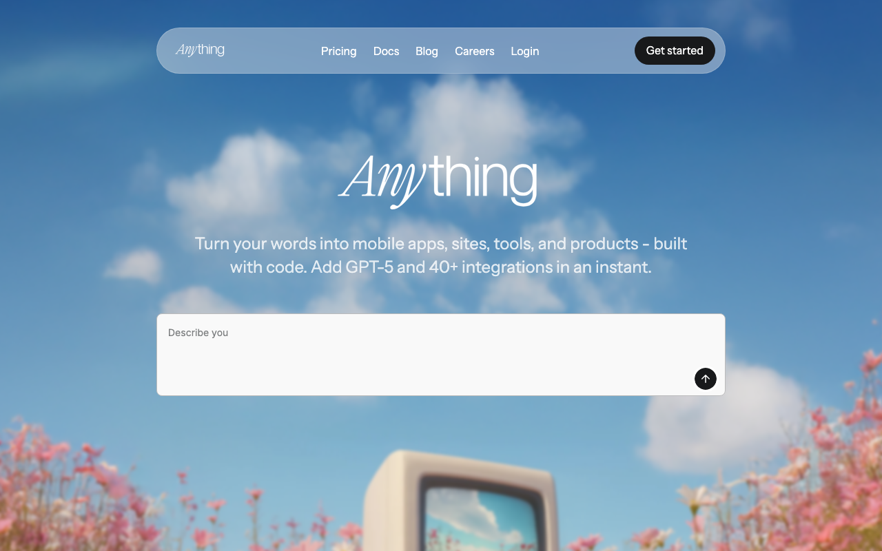 Anything es un creador de aplicaciones con IA que transforma ideas escritas en productos funcionales. En lugar de empezar desde cero con código, puedes describir lo que quieres construir y la plataforma genera apps, sitios web y otras herramientas listas para iterar.