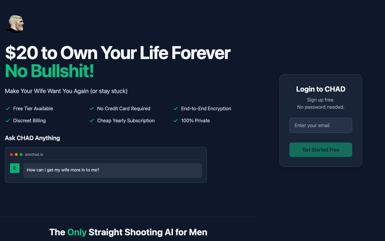 askCHAD.io es una herramienta de desarrollo personal que busca resolver problemas en las relaciones de pareja y el rendimiento sexual.