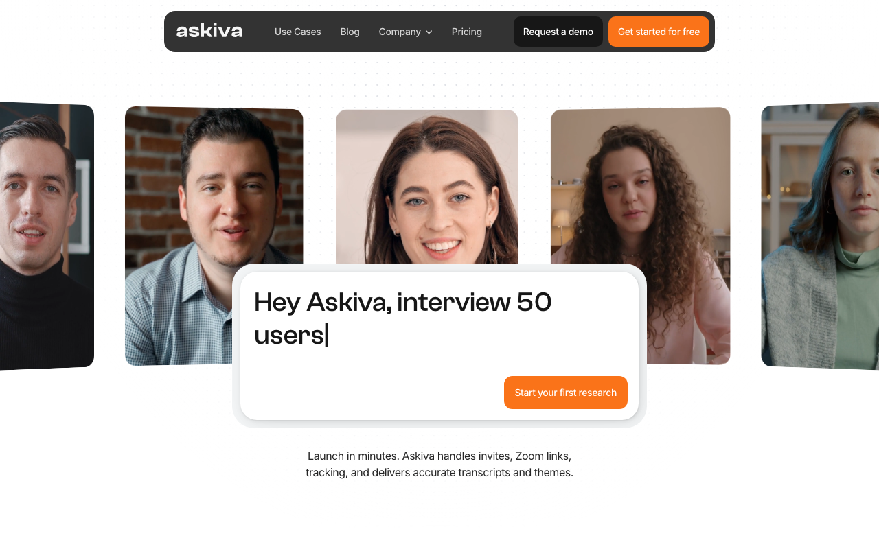Askiva es una plataforma de inteligencia artificial que automatiza el proceso de investigación de usuarios, desde la programación hasta la transcripción y análisis.