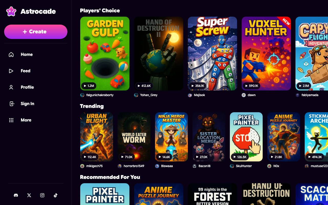 Crea y comparte juegos casuales interactivos con IA usando prompts de texto, sin programar, y juega con amigos en un universo social.