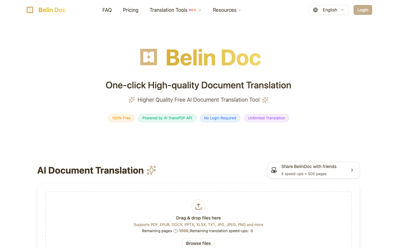Belin Doc es ideal para profesionales y individuos que necesitan traducir documentos de manera rápida y precisa. No requiere registro ni login, lo que lo hace accesible para cualquier usuario.