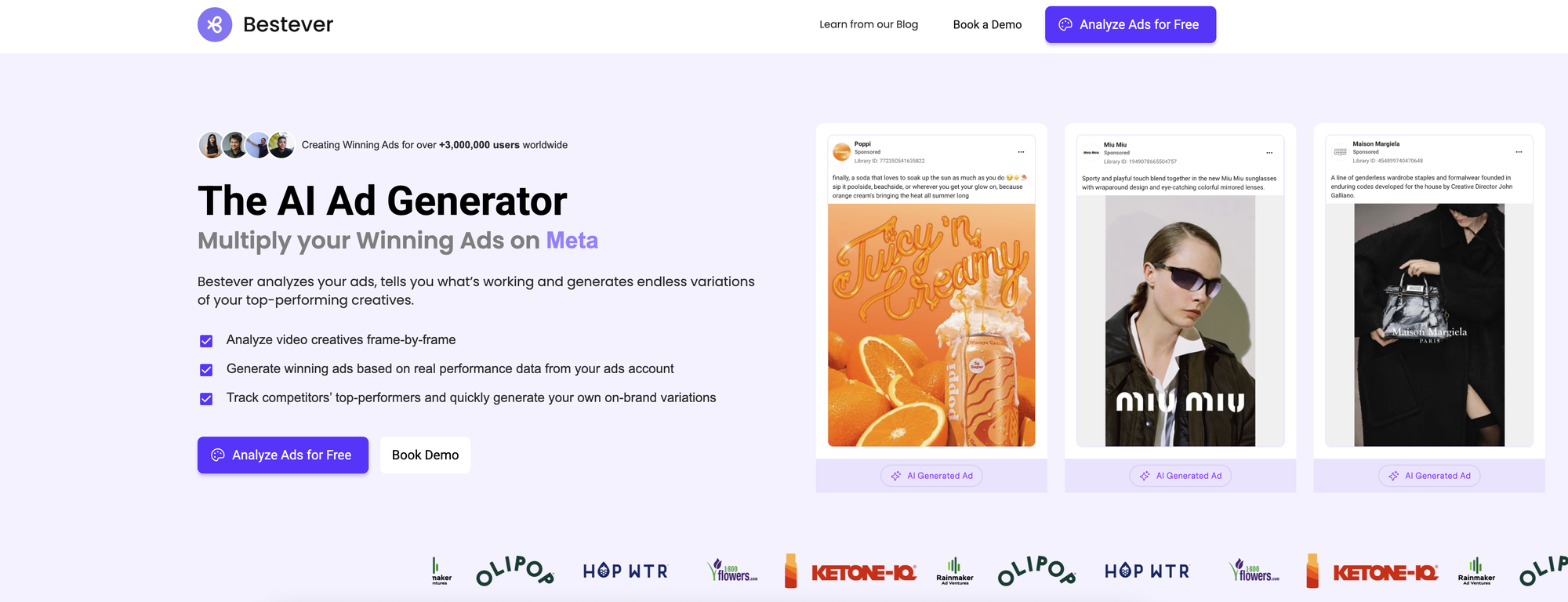 Bestever es una plataforma impulsada por inteligencia artificial que permite analizar y generar anuncios de alto rendimiento en diversas plataformas como Meta, Google, LinkedIn, Facebook, Instagram y YouTube. Con más de 3 millones de usuarios en todo el mundo, Bestever ayuda a estrategas creativos y especialistas en marketing a comprender qué hace que sus anuncios sean efectivos.