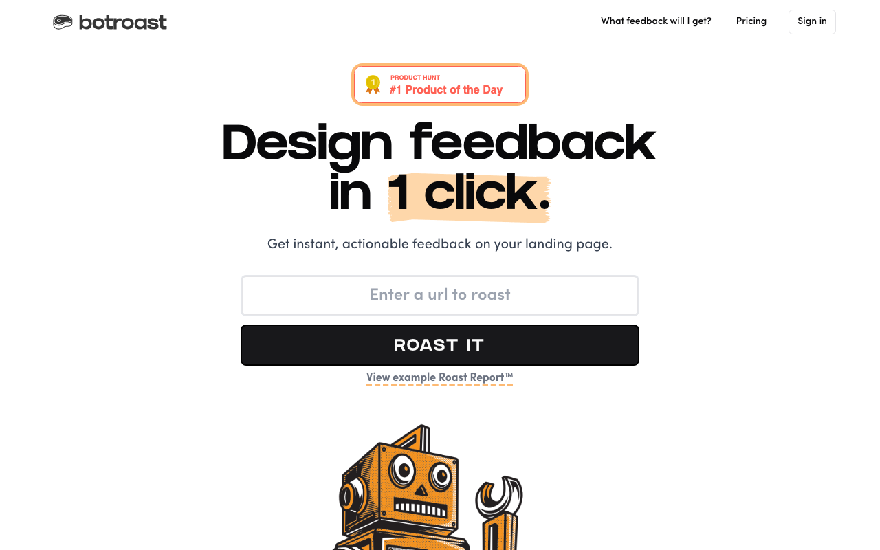 Botroast es una plataforma de feedback de diseño impulsada por IA que analiza piezas visuales y devuelve observaciones accionables en muy poco tiempo. Su enfoque está pensado para detectar oportunidades de mejora en interfaces, composiciones y fundamentos visuales sin depender de una revisión humana lenta.