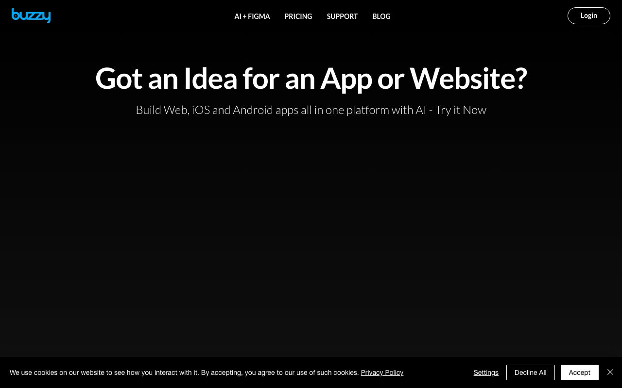 Buzzy es una plataforma no-code con IA para pasar de una idea a una app funcional en muy poco tiempo. Permite describir un proyecto en lenguaje natural y obtener diseños de alta calidad, además de aplicaciones web o móviles listas para iterar.
