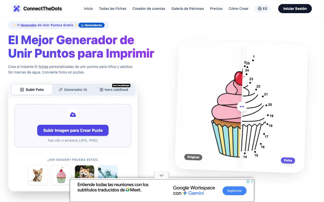 ConnectTheDots Generator es una herramienta de IA que transforma imágenes en puzzles de unir puntos profesionales y personalizables.