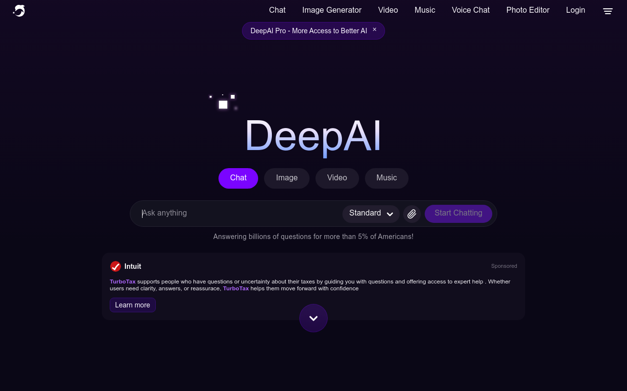 DeepAI es una plataforma de inteligencia artificial que ofrece herramientas accesibles para la generación de imágenes, texto, videos, música y chat a partir de descripciones de texto. Su objetivo es democratizar la creación avanzada de IA, permitiendo a aficionados, artistas, desarrolladores y profesionales crear contenido sin necesidad de conocimientos técnicos avanzados o altos costos.