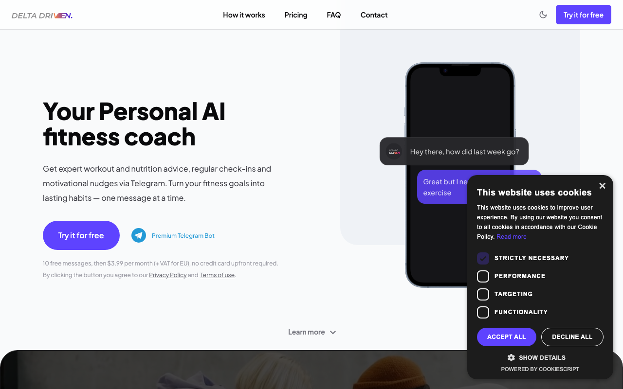 Delta Driven Bot es un entrenador personal de inteligencia artificial en Telegram que ofrece planes de ejercicios personalizados y consejos nutricionales.