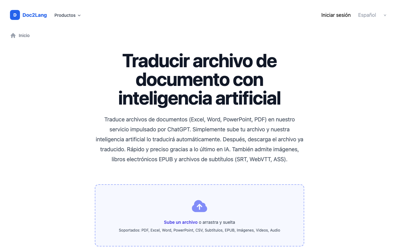 Doc2Lang traduce documentos en varios formatos como Excel, Word y PowerPoint utilizando inteligencia artificial.