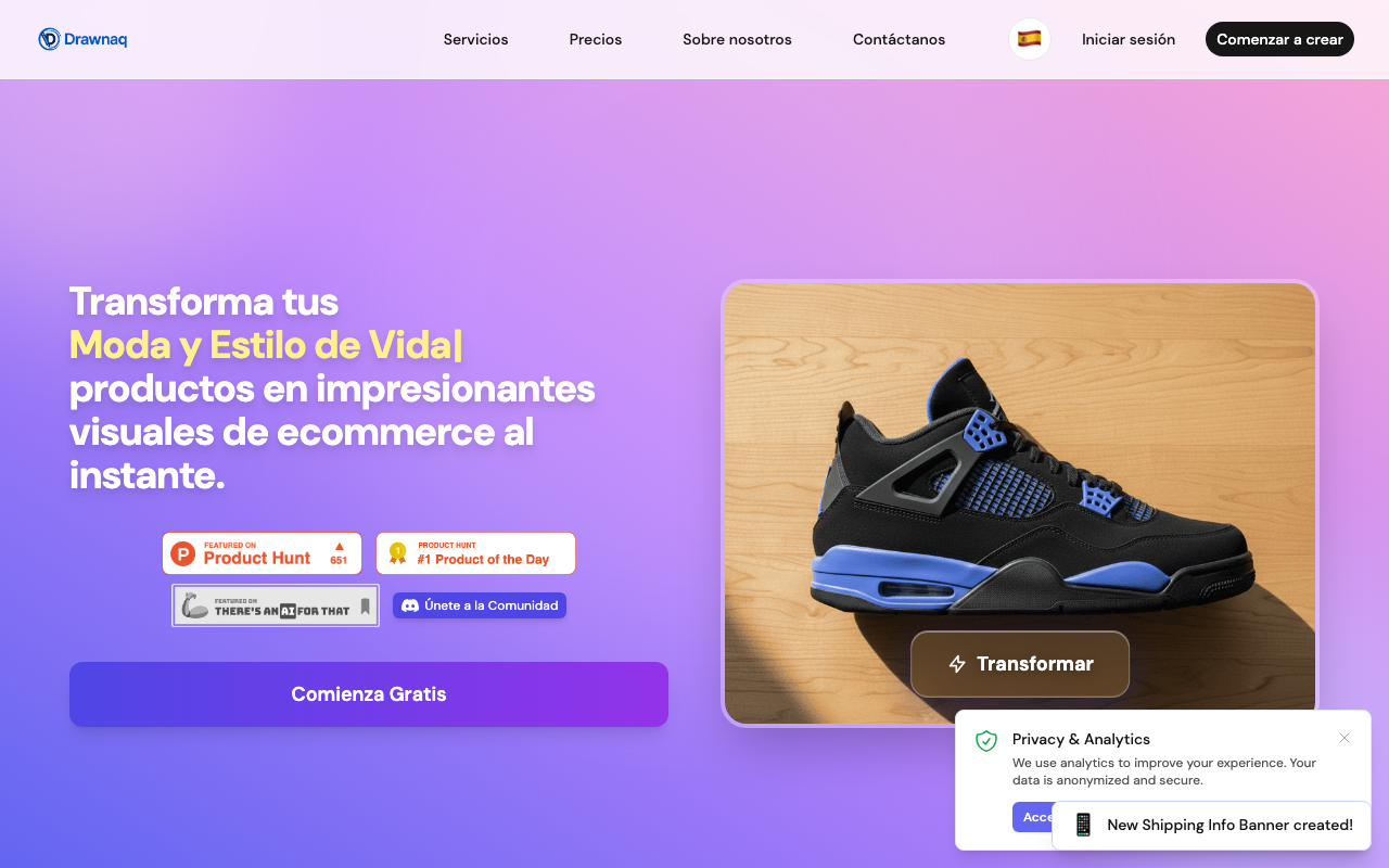 Drawnaq es una plataforma de diseño impulsada por IA que ayuda a crear piezas visuales profesionales con un flujo guiado paso a paso. Está pensada para simplificar tareas de diseño que normalmente requieren tiempo, software complejo o apoyo de un equipo creativo.