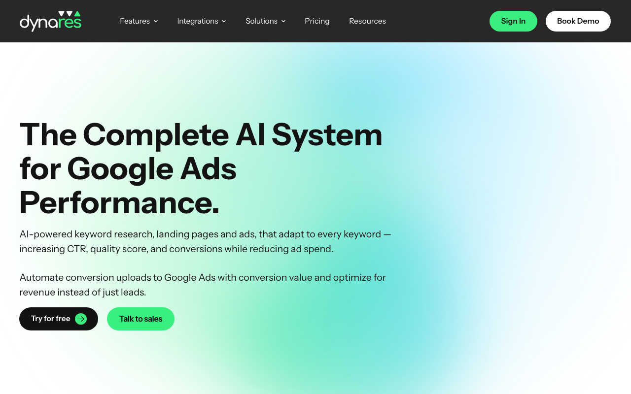 Dynares es una plataforma de IA enfocada en automatizar y optimizar campañas de Google Ads de principio a fin. Su propuesta combina generación de anuncios, landing pages contextuales y ajustes en tiempo real para mejorar el rendimiento publicitario con menos intervención manual.