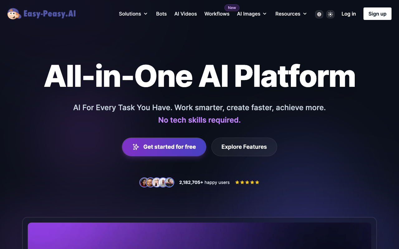Easy-Peasy.AI es una plataforma de IA que ayuda a crear contenido original y pulido 10 veces más rápido, con plantillas de redacción, imágenes y transcripciones AI.