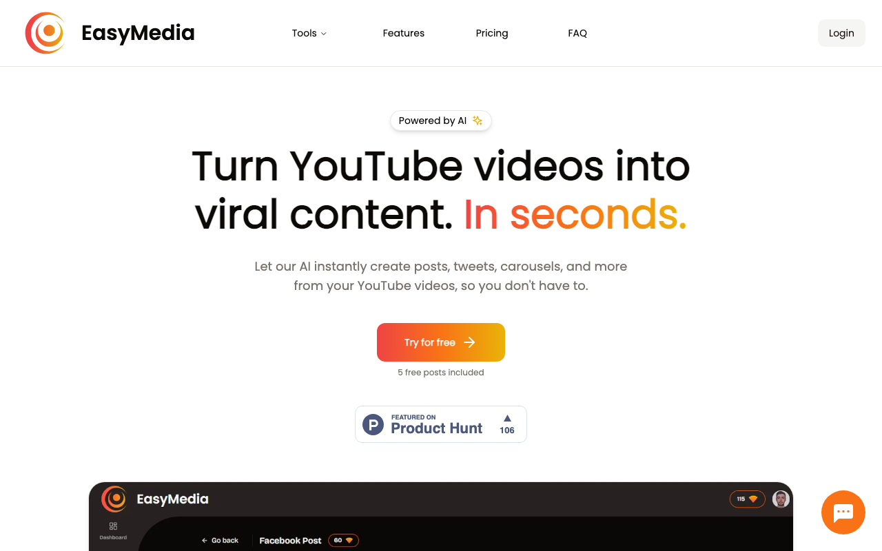 EasyMedia es una plataforma con IA que toma un video de tu biblioteca de YouTube y lo transforma en contenido para redes sociales. En lugar de crear pieza por pieza desde cero, la herramienta genera publicaciones pensadas para distintos canales, ayudándote a mantener presencia constante con menos esfuerzo.