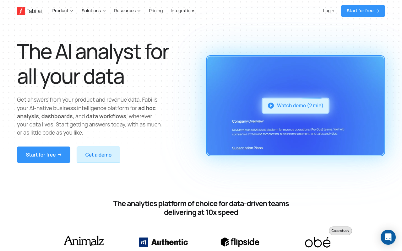 Fabi.ai es una plataforma de análisis de datos impulsada por inteligencia artificial, diseñada para profesionales de datos y equipos que buscan optimizar sus flujos de trabajo. Permite a los usuarios conectar diversas fuentes de datos, realizar consultas en lenguaje natural y generar informes automatizados, conocidos como Smartbooks. Además, ofrece la posibilidad de crear agentes de análisis de IA para un servicio de análisis autosuficiente.