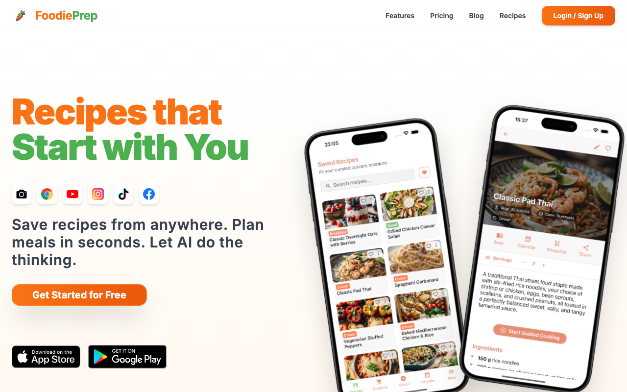 FoodiePrep es un asistente de planificación de comidas con IA que te ayuda a organizar tu semana, crear recetas a tu medida y llevar el control de tu despensa. La idea es simple: que cocinar en casa sea más fácil, más saludable y menos improvisado.
