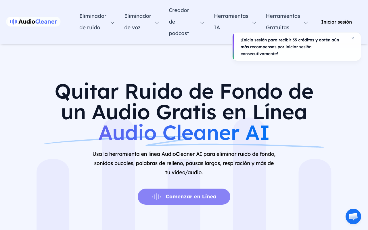 AudioCleaner AI es una plataforma online para limpiar audio y video con IA. Permite reducir ruido de fondo, eliminar pausas largas, quitar respiraciones y sonidos de boca, además de aislar voces o instrumentales con pocos clics.