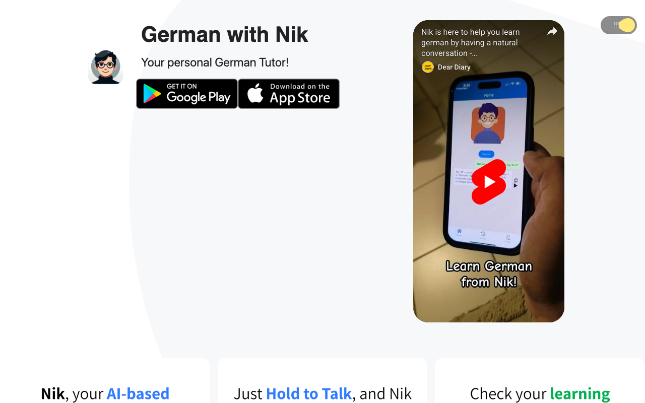 German with Nik es una herramienta de inteligencia artificial diseñada para ayudar a los usuarios a aprender alemán. La aplicación actúa como un tutor personal, interactuando con los usuarios en conversaciones para mejorar su aprendizaje del idioma.