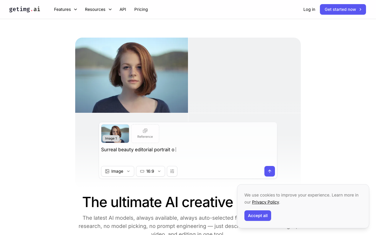 Getimg.ai es una plataforma creativa de IA pensada para producir contenido visual rápido y sin complicarte con la parte técnica. Desde un solo lugar puedes generar imágenes desde texto, editar fotos existentes y ampliar composiciones para que el resultado encaje mejor con lo que tenías en mente.