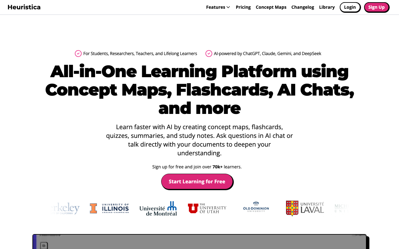 Heuristica es una herramienta de IA que ayuda en el aprendizaje, la investigación y el pensamiento creativo mediante mapas conceptuales visuales.