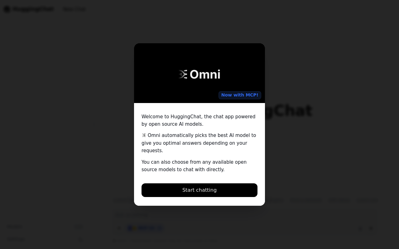 HuggingChat fue una interfaz de chatbot basada en la web, lanzada en abril de 2023 por Hugging Face. Permitía a los usuarios interactuar con modelos de lenguaje de gran tamaño (LLMs) de código abierto, como Gemma 7B 1.1 y Cohere Command R+, entre otros.