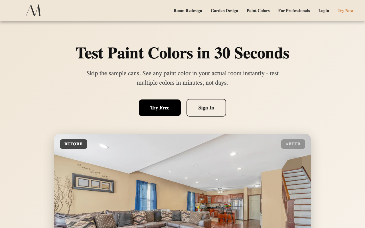 Convierte fotos de tu habitación en propuestas de pintura y decoración con IA, pensado para propietarios, decoradores y profesionales que quieren visualizar cambios rápido.
