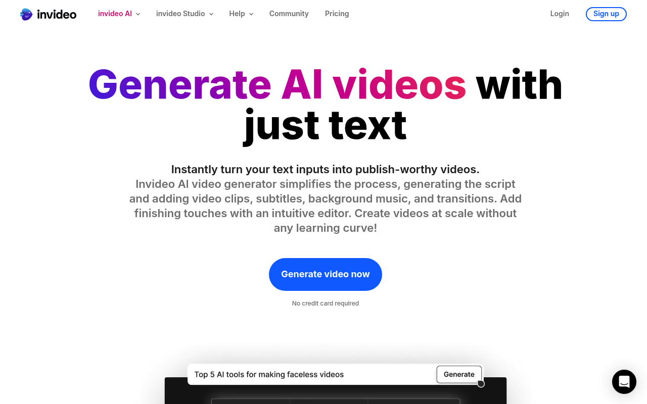 Invideo es una plataforma en línea impulsada por inteligencia artificial que permite la creación de videos completos a partir de indicaciones de texto, guiones, artículos o ideas. Esta herramienta está diseñada para creadores, empresas y especialistas en marketing que buscan simplificar el proceso de producción de videos, eliminando la necesidad de filmación manual o habilidades avanzadas de edición.