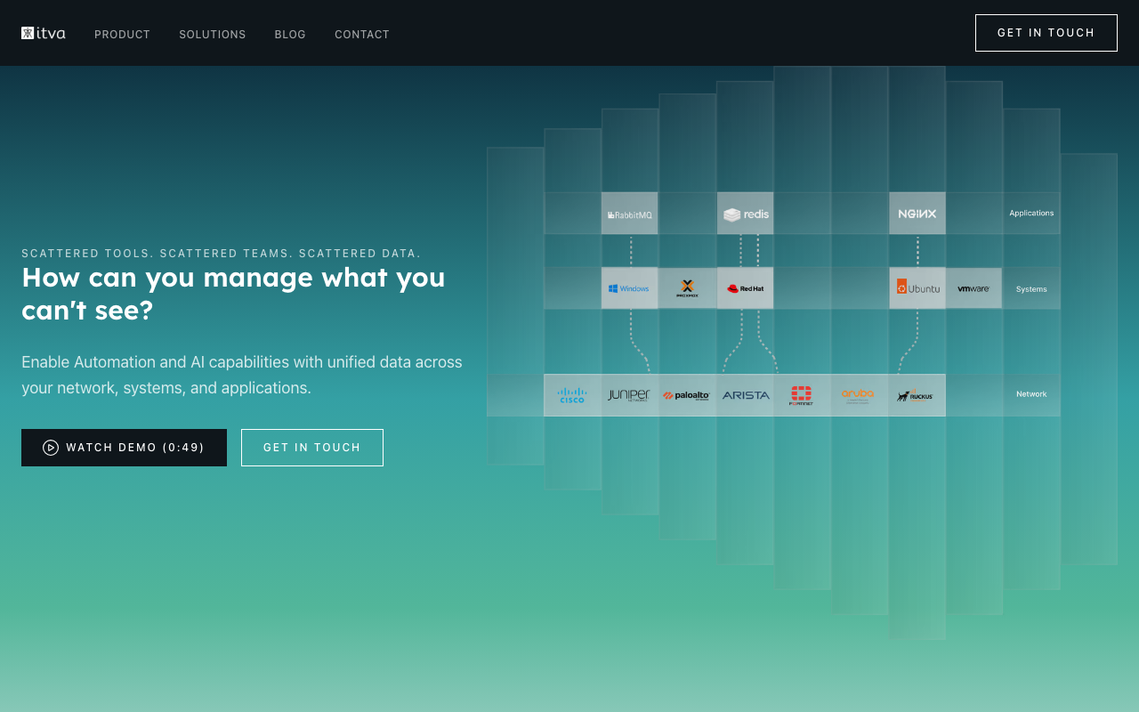 ITVA es una plataforma de visibilidad y automatización para infraestructura de TI. Su propuesta se centra en unificar datos dispersos de redes, servidores y endpoints para que los equipos técnicos puedan inventariar dispositivos, mapear topologías y operar con una vista centralizada.