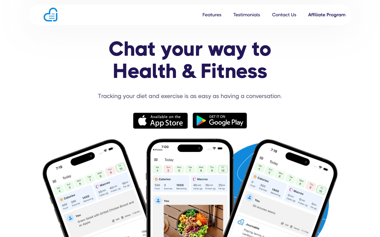 Journable es una app de conteo de calorías con IA que permite registrar comidas, entrenamientos y macros mediante una conversación tipo chat. En lugar de cargar datos manualmente en tablas o bases de alimentos, puedes escribir lo que comiste, enviar una foto o describir tu actividad física para obtener un seguimiento inmediato.