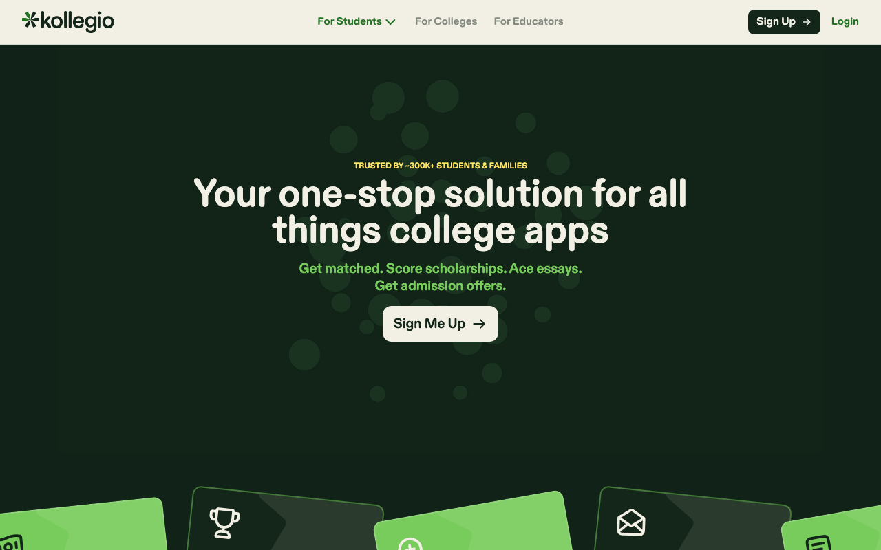 Kollegio AI es una plataforma de orientación universitaria impulsada por IA, pensada para estudiantes de secundaria y sus familias. Su propuesta es simplificar un proceso que suele ser confuso, largo y estresante: elegir universidades, ordenar prioridades, mejorar ensayos y encontrar becas.
