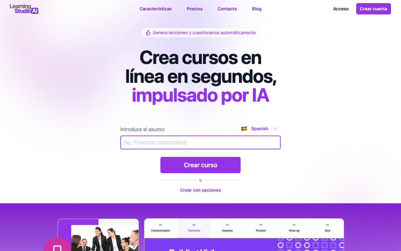 Crea cursos en línea atractivos y personalizados de manera rápida y sencilla utilizando inteligencia artificial.