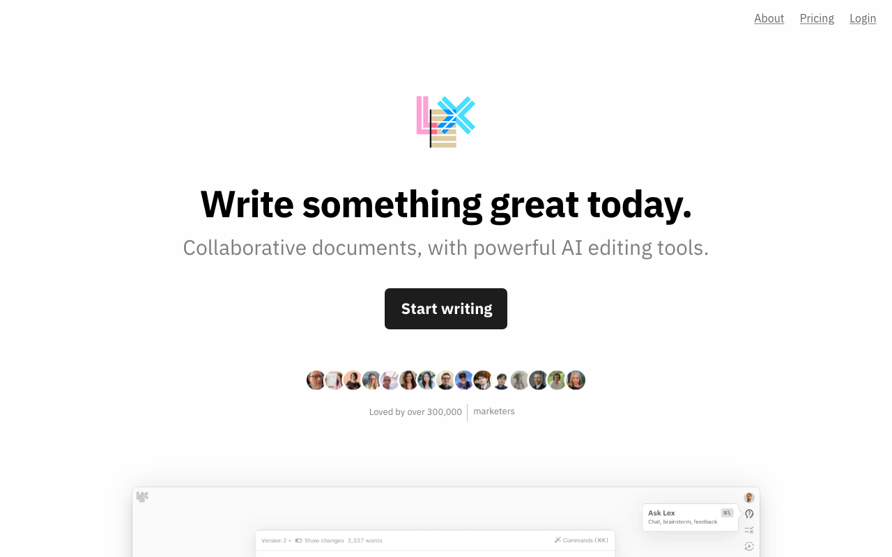 Lex es adecuado para cualquier persona que necesite mejorar su escritura, desde estudiantes y profesionales hasta escritores creativos y colaboradores en equipo. Ofrece una interfaz minimalista que permite enfocarse en la escritura y proporciona una variedad de características útiles para mejorar la calidad del texto.