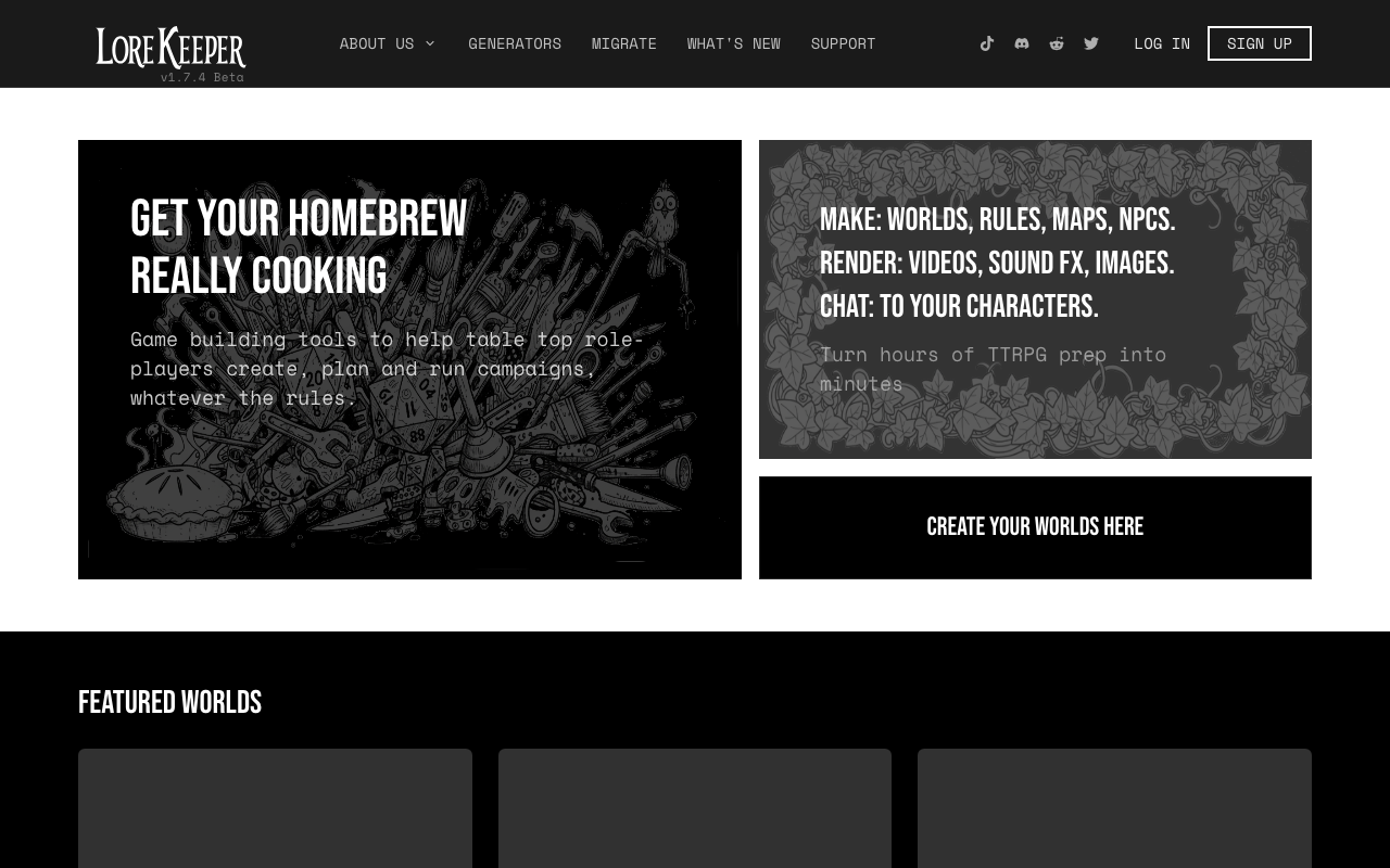 LoreKeeper combina creación de contenido (NPCs, mapas/ubicaciones, arte y escenas) con un sistema de lore que actúa como base de conocimiento para el resto del material. Además, promete compatibilidad con reglas populares como Pathfinder y un enfoque orientado a campañas completas, no solo a “generar texto”.