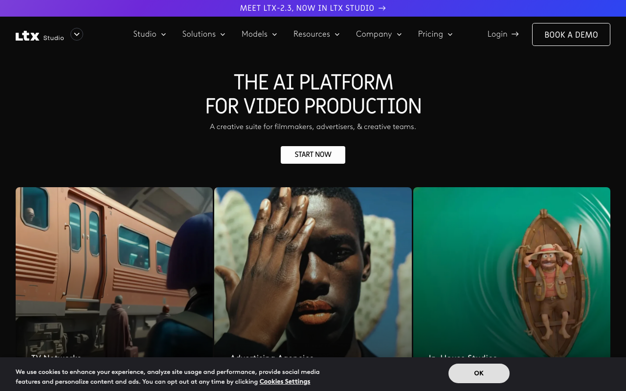 LTX Studio es una plataforma de producción de video con IA que ayuda a convertir ideas, guiones, imágenes o referencias visuales en piezas audiovisuales listas para avanzar en preproducción y edición. Su enfoque está más cerca de un estudio creativo asistido por IA que de un simple generador de clips.
