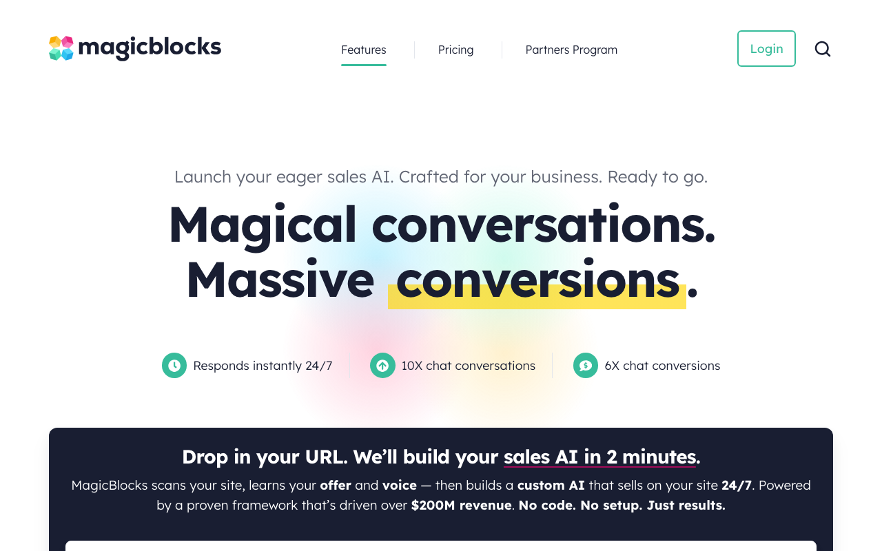 MagicBlocks es una plataforma de IA conversacional sin código para agencias, marketers y fundadores que desean mejorar sus ventas mediante la interacción con clientes en tiempo real.
