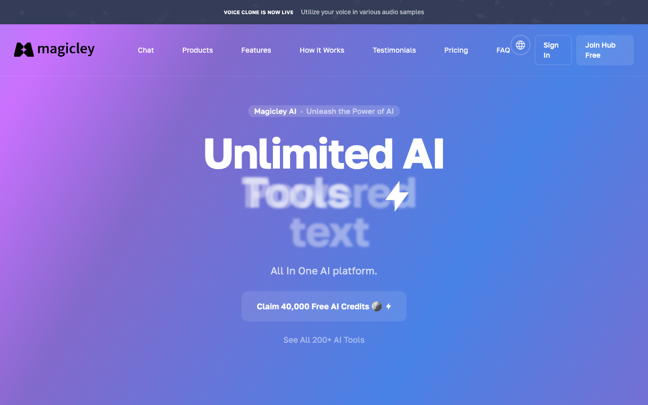 ¿Qué es Magicley AI? Magicley AI es una plataforma todo-en-uno que ofrece una suite de herramientas de generación de inteligencia artificial (IA).