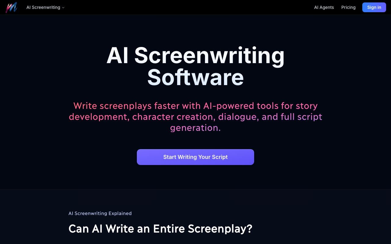 Melies AI Screenwriting Software es una plataforma de escritura de guiones asistida por inteligencia artificial pensada para acelerar la preproducción creativa. Permite pasar de una idea suelta a un guion más sólido, con apoyo en la creación de personajes, estructura narrativa, escenas y diálogos.