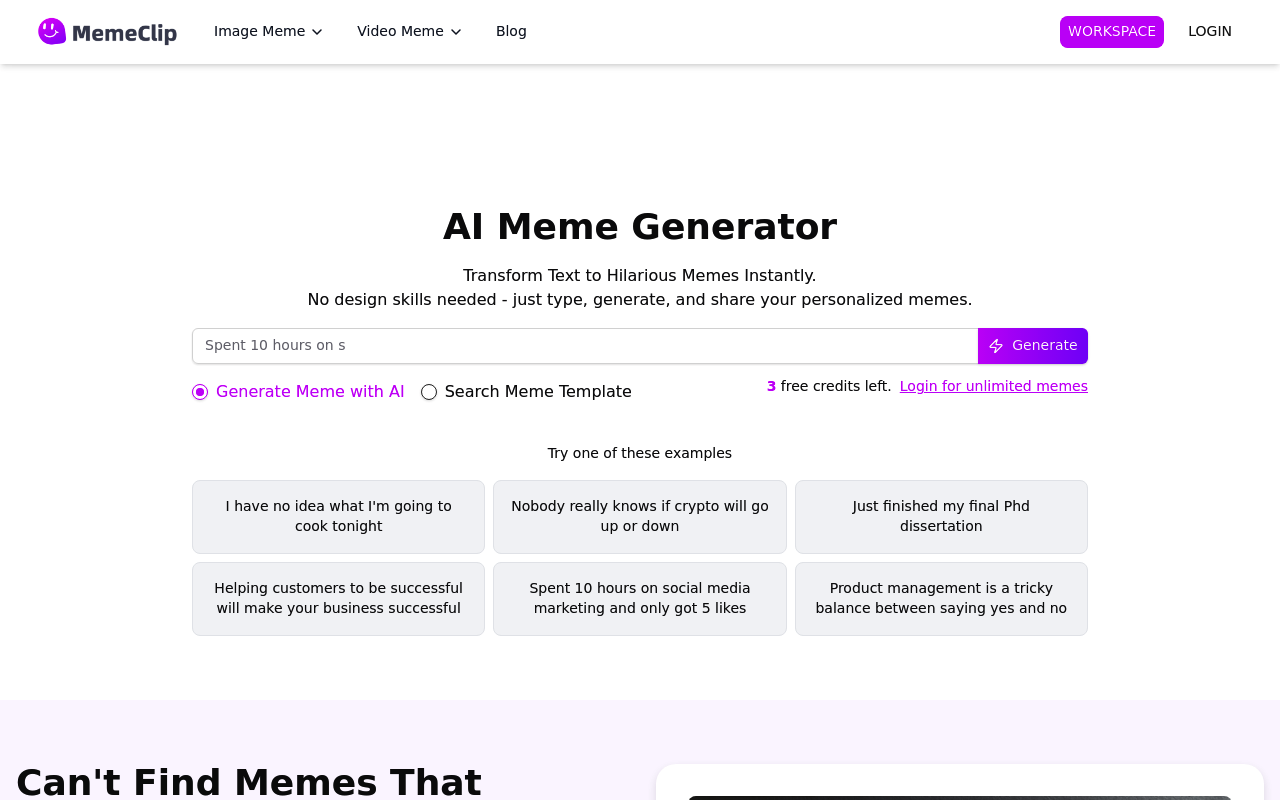 MemeClip AI Meme Generator es una herramienta creativa que automatiza el proceso de generación de memes a partir de texto proporcionado por el usuario. Utilizando tecnologías de inteligencia artificial, busca simplificar la creación de memes y hacerla accesible incluso para aquellos sin habilidades de diseño.