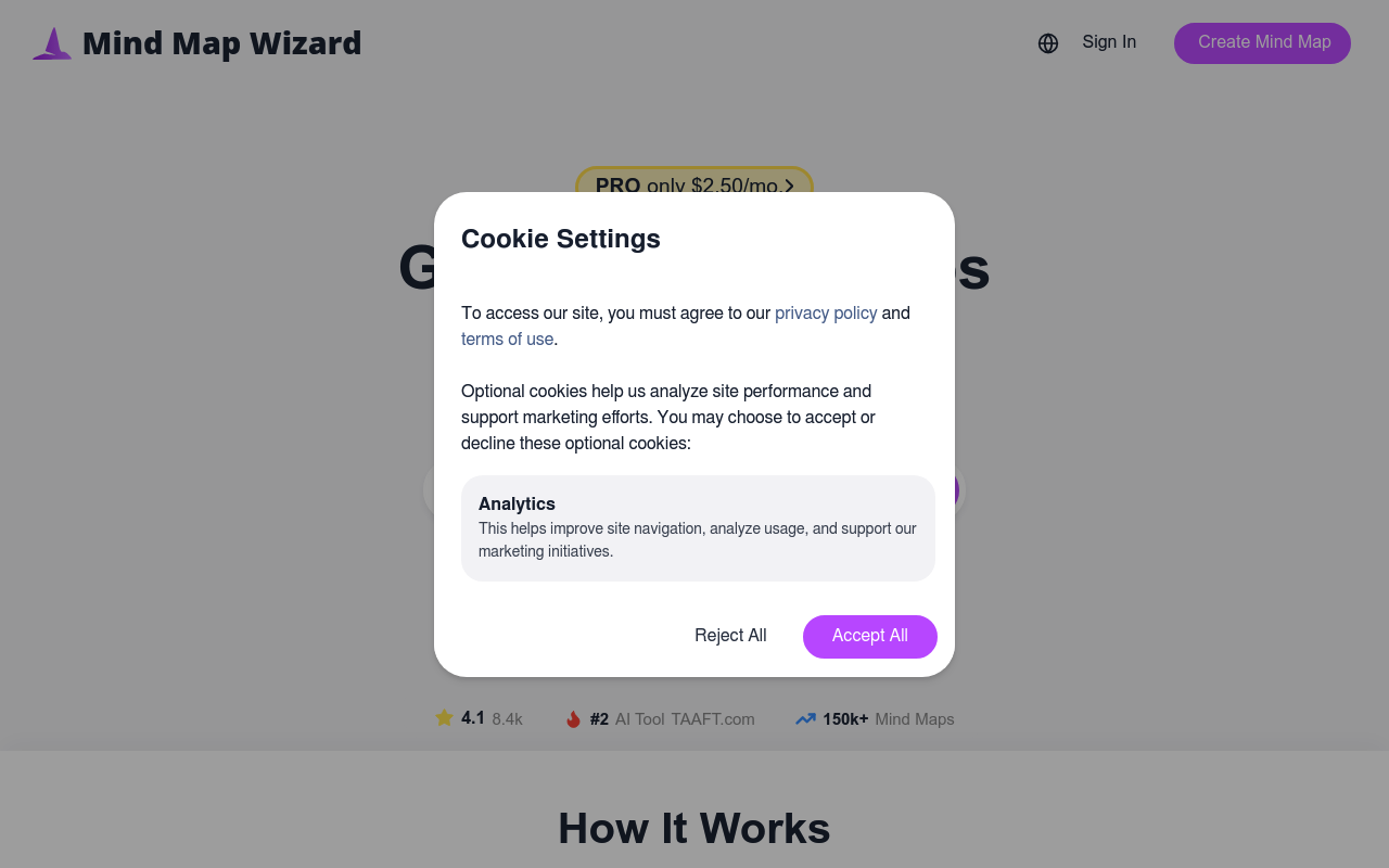 Mind Map Wizard es una herramienta impulsada por inteligencia artificial que permite a los usuarios crear mapas mentales de manera rápida y efectiva. Simplemente ingresando un tema de interés, la aplicación genera un mapa mental visualmente atractivo que ayuda a organizar y explorar ideas.