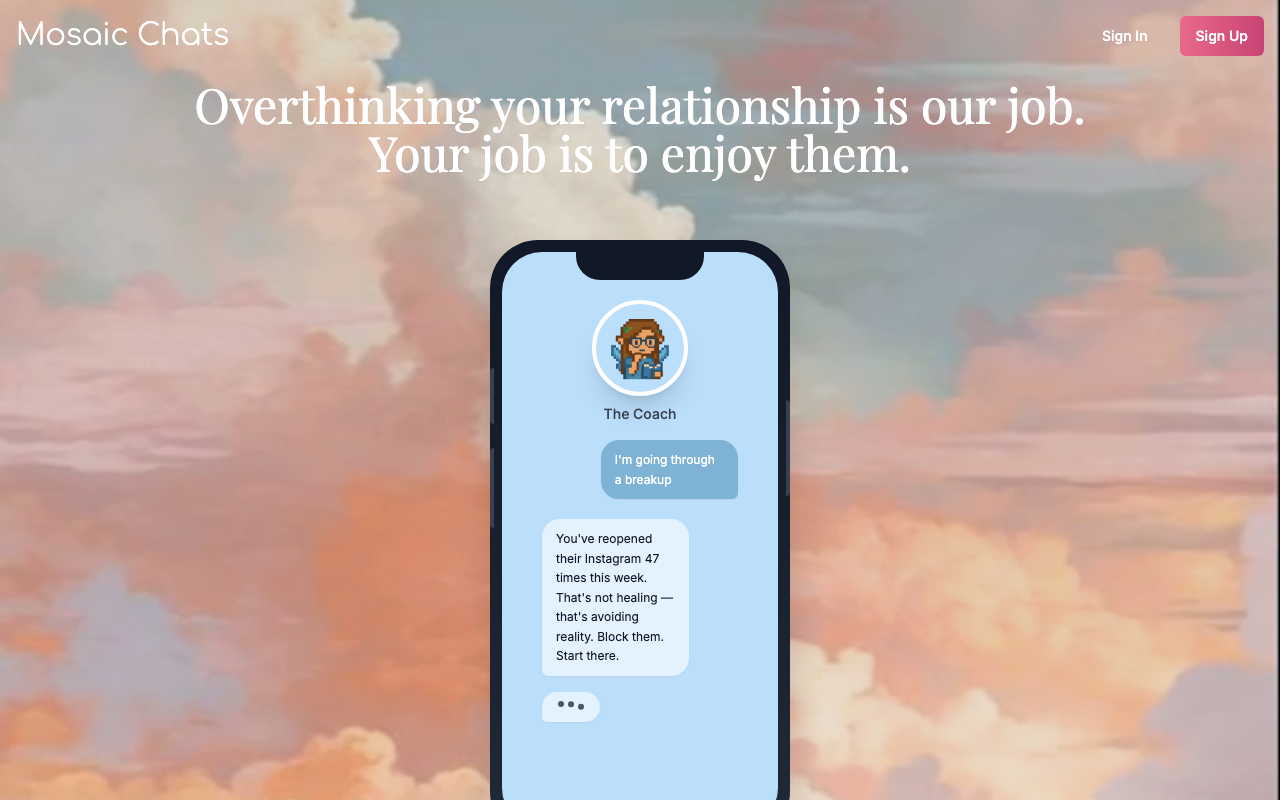 Mosaic AI Chat Analyzer es una herramienta que utiliza inteligencia artificial para analizar conversaciones de chat en diversas plataformas, como WhatsApp, iMessage, Instagram, Telegram, Messenger y Snapchat. Proporciona insights sobre la compatibilidad, patrones de comunicación y tendencias emocionales.