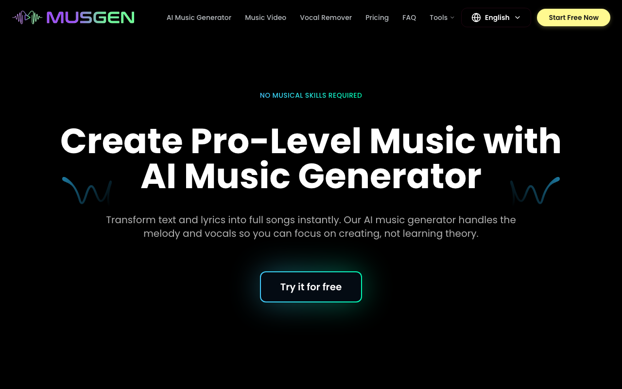MusGen es un generador de música con IA que convierte texto, letras o una idea breve en canciones completas. La plataforma se encarga de la melodía, la voz y la estructura del tema, por lo que no necesitas conocimientos musicales para empezar.