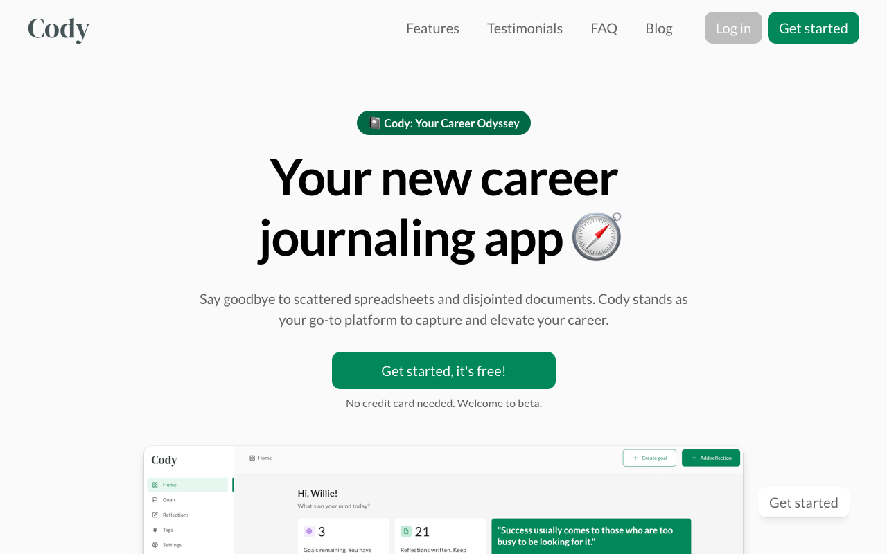 MyCody es una app de journaling profesional con enfoque en carrera y desarrollo laboral. Está pensada para registrar avances diarios, objetivos, aprendizajes y reflexiones sobre el trabajo en un solo lugar, de forma simple y ordenada.