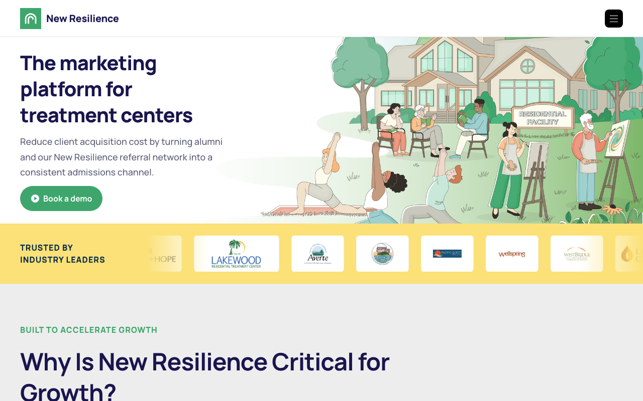 A diferencia de un CRM tradicional, New Resilience está construido para flujos reales de salud conductual: admisiones, outreach, portal de clientes, reportes listos para usar y automatización con IA. Su propuesta apunta a acelerar la puesta en marcha, mejorar la coordinación del equipo y reducir fricción operativa en entornos sensibles.