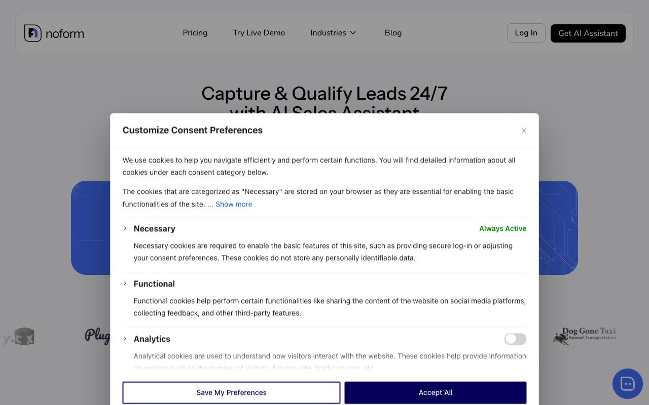 NoForm.ai es un asistente de ventas basado en IA que aumenta las conversiones y la interacción en tu sitio web.