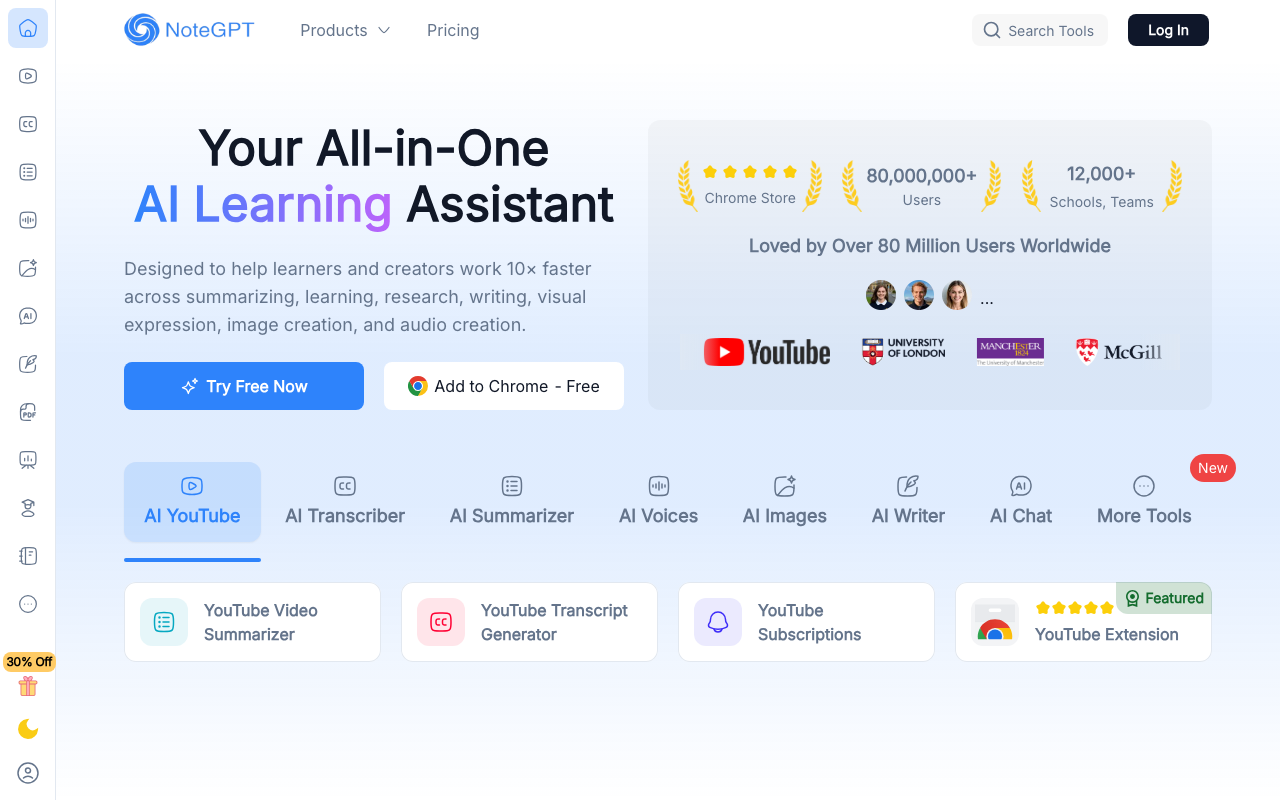 NoteGPT ayuda a resolver problemas de comprensión y resumen de contenido largo y complejo. Con sus características de resumen de texto y video, la herramienta permite a los usuarios capturar y organizar la información clave de manera eficiente, lo que mejora la eficiencia del aprendizaje.